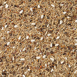 gele millet 33,5%, gepelde haver 13%, rode millet 10%, cardy 8%, kanariezaad 6%, gestreepte zonnebloempitten 6%, tarwe 5%, koolzaad 4%, witte millet 4%, lijnzaad 3%, paddy rijst 3%, japanse millet 2%, gepelde aardnoten 1,5%, nigerzaad 1%