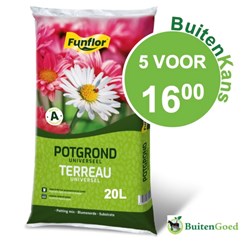 Hoogwaardige Funflor kwaliteitspotgrond met 6-8 weken voeding. Op basis van tuinturf, witveen, verrijkt met kalk, NPK meststoffen en met voor de plant belangrijke sporenelementenen.